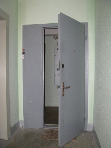 Размещение двери в тамбуре подъезда для дополнительной защиты от постороннего вторжения, а также – для повышения изоляционных свойств + в качестве препятствия для пыли и влаги.