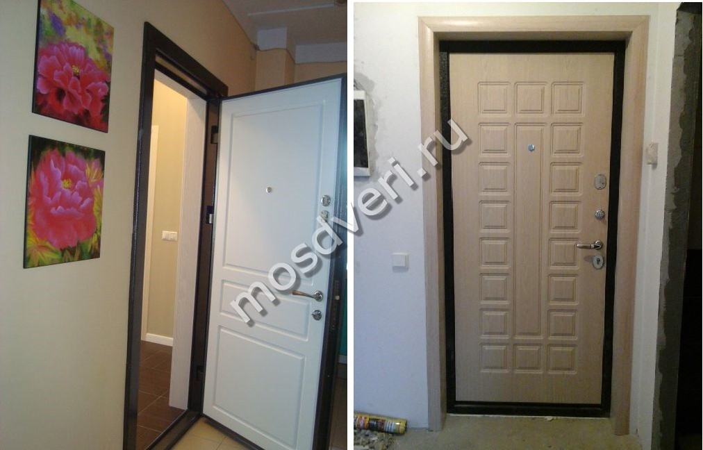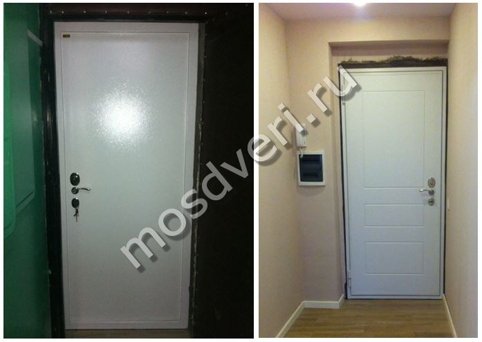 Квартирные двери утепляются минеральной ватой. Или пенополиуретаном, комплектуются уплотнителями, герметизирующими стыки и не пропускающими тепла и шума. Белая внутренняя панель украшается различным декором и зеркалами.